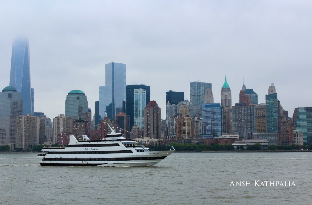 We were standing in the queue to board the ferry to Liberty Island, so that we could visit the Statue of Liberty. While waiting, we started admiring the Hudson River and the Ney York City Skyline. The Yacht was passing by, and it’s slick and elegant design caught my eye. And bingo, I took out my camera and took this shot.